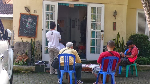 So suatu sore ibu sempetin mampir ke sanggar ini. Ternyata sanggar ini merangkap asrama mahasiswa Bali. Jadi waktu ibu mampir, berhubung bukan saat latihan, ruang tamunya penuh dengan para mahasiswa bertaburan. Hahaha... ibu tanya-tanya info dan dapet info bahwa ibu bisa mulai membawa adek latihan hari Minggu. Ternyata latihan dibagi menjadi dua sesi. Sesi pemula dilaksanakan hari minggu jam 07.30-09.00.  Sesi mahir jam 09.00-11.00.  Biaya pendaftaran tetap 60rebu cuma biaya les bulanannya naek dikit, jadi 75rebu. Tapi ya relatif murah laah segitu.  So ibu putuskan untuk mendaftarkan adek Ayu ke sanggar ini.