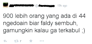Jumat siang ibu sempetin nengok.  Melihat faldy tergeletak di tempat tidur, dengan kepala di balut perban, selang dimana-mana, ibu nggak kuat menahan sedih. Ibu nggak ngebayangin seperti apa perasaan ibunya.  Semoga mereka diberi kekuatan dan ketabahan.... Ibu sempat ngobrol sedikit dengan suster. Menurut suster, memang keadaannya sekarang stabil, denyut jantung teratur, tapi kondisinya koma, dan keliatannya belum ada perkembangan ke arah yang baik, suster bilang, masih dalam keadaan kritis. Oaalaah.. .menurut kakak yang langsung menengok kamis kemaren, luka di kepalanya cukup parah, kepalanya bengkak hebat dan yang terkena benturan seperti yang berlubang. Darah membasahi seluruh sweater yang dipakainya, sungguh pemandangan yang mengguncang kakak dan teman-temannya.
