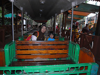 Mungkin karena kecapean dan terpisah-pisah dengan yang lain, banyak anak-anak yang memilih diem di arena Gajah sampe acara selesai. Ayu ngajakin ibu naek kereta api yang memutari mini zoo. Tiket kereta api ini lumayan mahal, 15rebu per orang.
